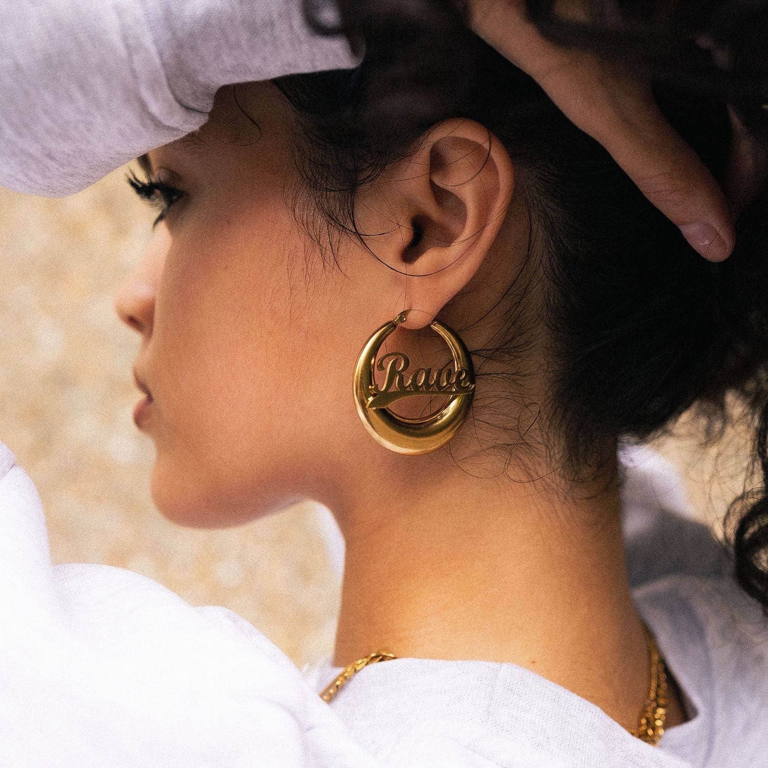These hoops are 18kt gold plated Stainless Steel with a PVD vacuum coating which mean they're 100% waterproof, tarnish free and won’t ever turn your ears green.